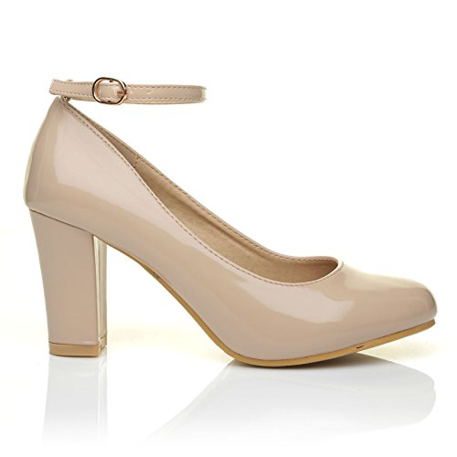 ShuWish UK offer ZARA Nude Patent Block Heel Ankle Strap Round Toe Court Shoes Size UK 5 EU 38. This awesome product currently limited units, you can buy it now for £24.99, You save -